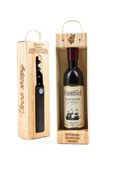 Vývrtka ve tvaru vinné lahve s originálním potiskem viněty je vhodným dárkem pro všechny milovníky vína. Užijte si svoji chvilku v dobré společnosti! Vývrtka s magnetem pro uchycení na lednici je balena v dárkové krabičce. Rozměr 12,5 x 3,5 x 2,5 cm. prečítať celé