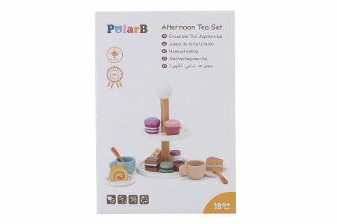 Dřevěný čajový set. Sada obsahuje stojan , dva talíře, 2 šálky, dvě lžičky a 9 dortíků. Rozměry výrobku 18 x 25,7 cm. Rozměry balení cca 27 x 18,5 x 18,5 cm. Věk 18m+ prečítať celé