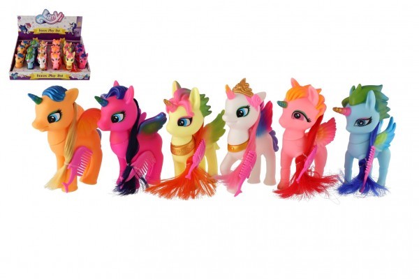 Jednorožec s křídly česací plast 14cm s hřebenem 6 druhů 18ks v boxu
