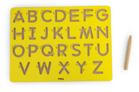 Vďaka prehľadnému označeniu písmen spolu so smermi a počtom ťahov, ktoré je potrebné pri písaní dodržať, sa deti naučia správnu techniku písania už od 3 rokov. Súčasťou balenia je aj praktická drevená ceruzka-ukazovátko, ktorá motivuje deti k aktívnemu zapojeniu pri učení. Tabuľka má rozmery cca 30 x 22 x 1 cm, takže je ľahko prenosná a vhodná tak pre domáce použitie, ako aj do škôlky či školských aktivít.