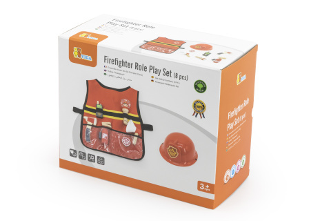 Hasičský set obsahuje látkovou vestu, plastovou helmu a 6 dřevěných hasičských pomůcek. Rozměry balení cca 24,5x20x12 cm. Rozměry vesty 41x45,5 cm. Rozměry helmy 21x19x10 cm. Věk 3+ prečítať celé
