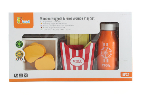 Dřevěná sada jídla obsahuje džus, hranolky v krabičce, nugety v mističce a kečup. Rozměry balení cca 16 x 28 x 5,5 cm. Věk 18m+ prečítať celé