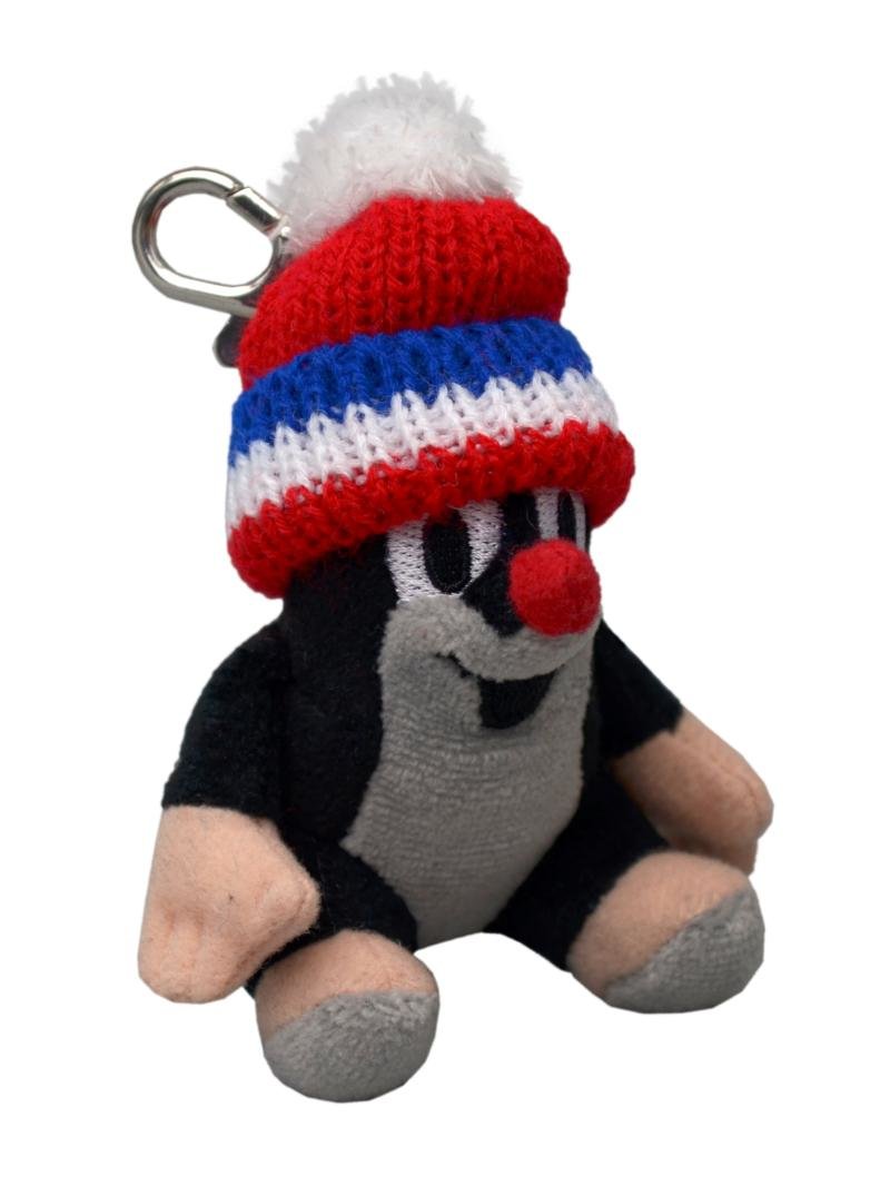 Plyšový přívěsek na kovové karabině. Krteček sedící s kulichem v červené trikoloře.Doporučený věk: od 1 roku, CE prečítať celé