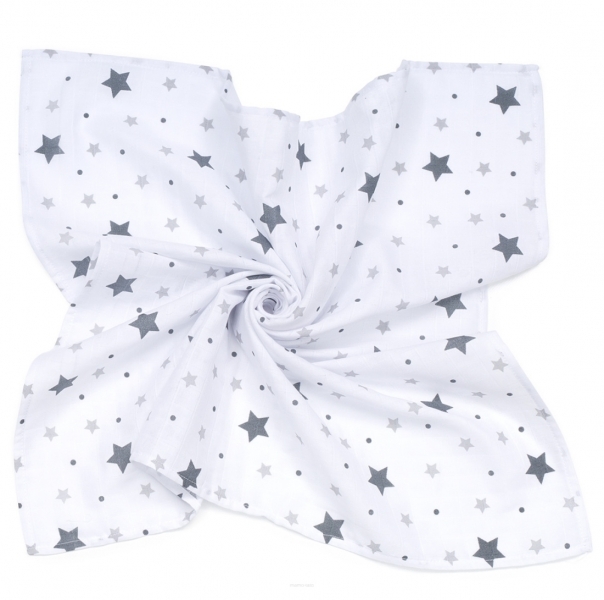 Mušelínová zavinovací deka/plenka + mini plenka Hvězdičky, šedá/bílá