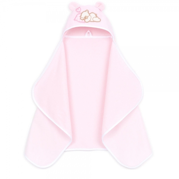 Maxi osuška, pončo s kapucí Medvídek 70x120cm - růžová