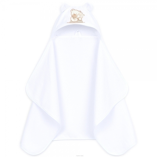 Maxi osuška, pončo s kapucí Medvídek se zajíčkem, 70x120cm - bílá