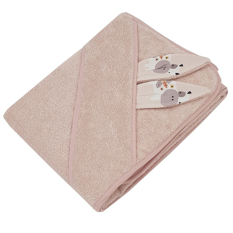 EKO Osuška na koupání s oušky bavlněná My Farm Powder pink 100x100 cm