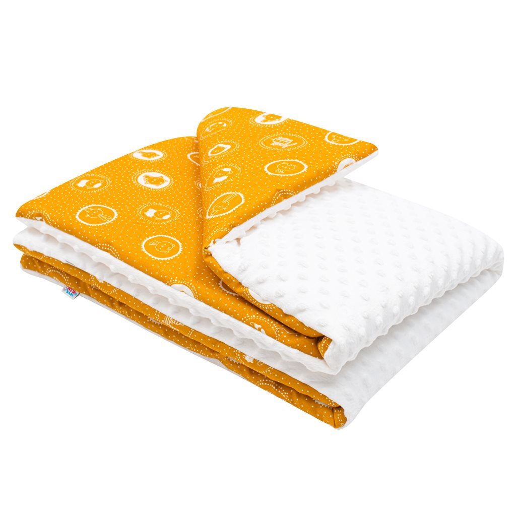 Dětská deka z Minky s výplní New Baby Zvířátka hořčicová 70x100 cm