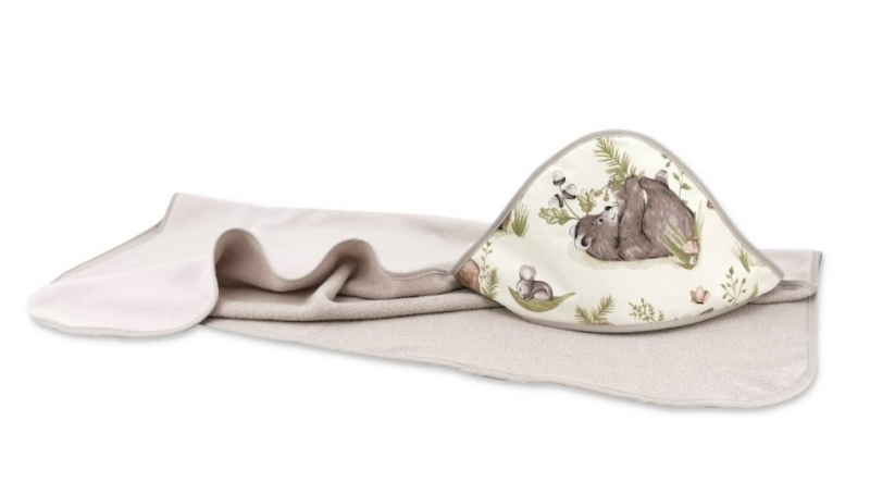 Dětská termoosuška s kapucí, Pohoda v lese, 100 x 100 cm, ecru/šedá