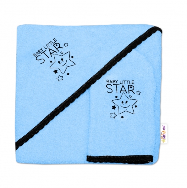 Dětská osuška s kapucí + žínka Baby Little Star, Baby Nellys, roz. 80 x 80 cm - modrá