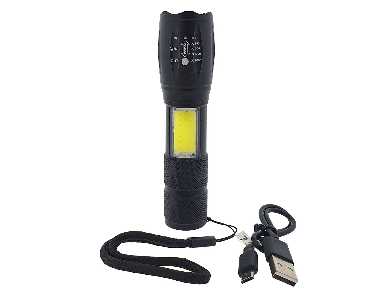 Baterka obsahuje i boční světlo tvořené COB (chip on board) technologií spočívající v koncentraci jednotlivých LED čipů na malé ploše. Technologie zaručuje ještě větší světelný výkon, než jaký zajišťují LED diody. Díky umístění čipů můžete baterku použít k osvětlení okolního prostoru bez nutnosti jejího držení. Vybírat můžete ze tří režimů svícení, plný výkon, střední (50%) a blikání. Použitý materiál zajišťuje odolnost svítilny a chrání proti povětrnostním vlivům.