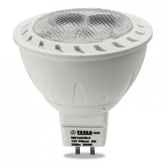 TESLA - LED MR160430-5 Patice/závit: 0. Barva světla: teplá bílá. Teplota chromatičnosti [K]: 3000. Náhrada za: 30 W. Index podání barev: 80 Ra. Krytí IP: IP20. Měrný výkon [lm/W]: 75. Energetická třída: A+. Životnost [hod.]: 20000. Příkon [W]: 4.'TESLA Lighting je českou značkou a řadí se mezi...