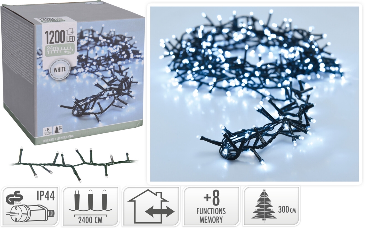 Světelný řetěz 1200 LED 24 m, studená bílá