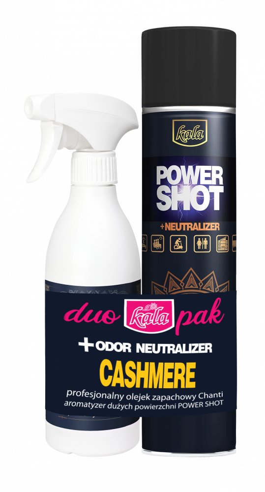 Neutralizátor pachů, osvěžovač aroma Kala POWER SHOT 600 ml je přípravek s revolučním způsobem dávkování, díky kterému jedno stisknutí ventilu (cca 1 vteřina) neutralizuje nepříjemné pachy a aromatizuje cca 200 m3. POWER SHOT obsahuje aktivní látky, díky kterým jsou nepříjemné pachy...