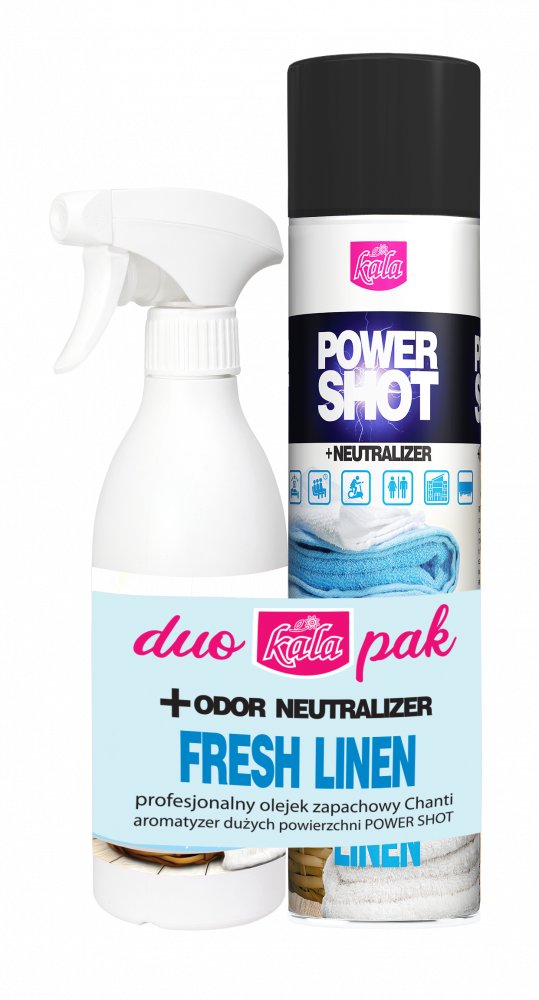 Neutralizátor pachů, osvěžovač aroma Kala POWER SHOT 600 ml je přípravek s revolučním způsobem dávkování, díky kterému jedno stisknutí ventilu (cca 1 vteřina) neutralizuje nepříjemné pachy a aromatizuje cca 200 m3. POWER SHOT obsahuje aktivní látky, díky kterým jsou nepříjemné pachy...