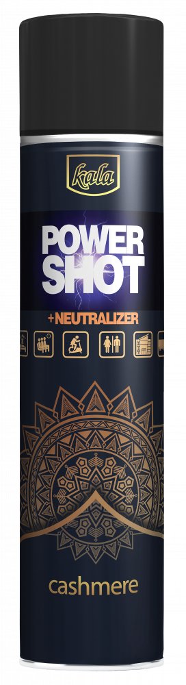 Neutralizátor pachů, osvěžovač aroma Kala POWER SHOT 600 ml je přípravek s revolučním způsobem dávkování, díky kterému jedno stisknutí ventilu (cca 1 vteřina) neutralizuje nepříjemné pachy a aromatizuje cca 200 m3. POWER SHOT obsahuje aktivní látky, díky kterým jsou nepříjemné pachy...