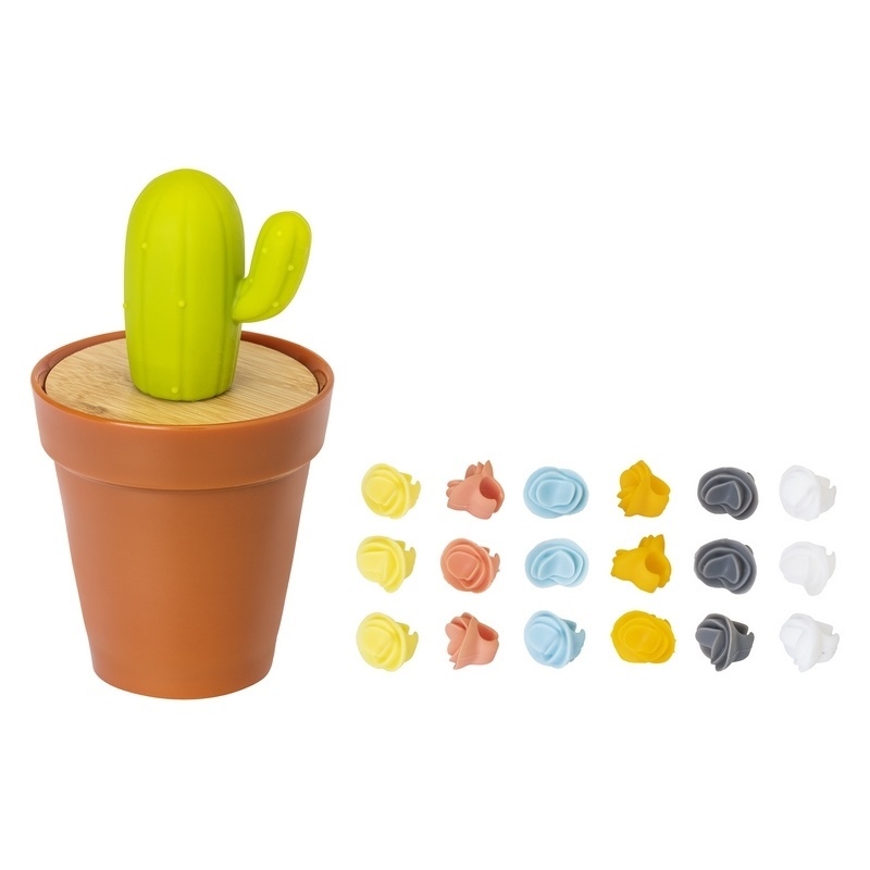 - Skládá se ze zátky na láhev, 18 vysoce kvalitních silikonových zátek na skleničky a nádoby s bambusovým víčkem.
