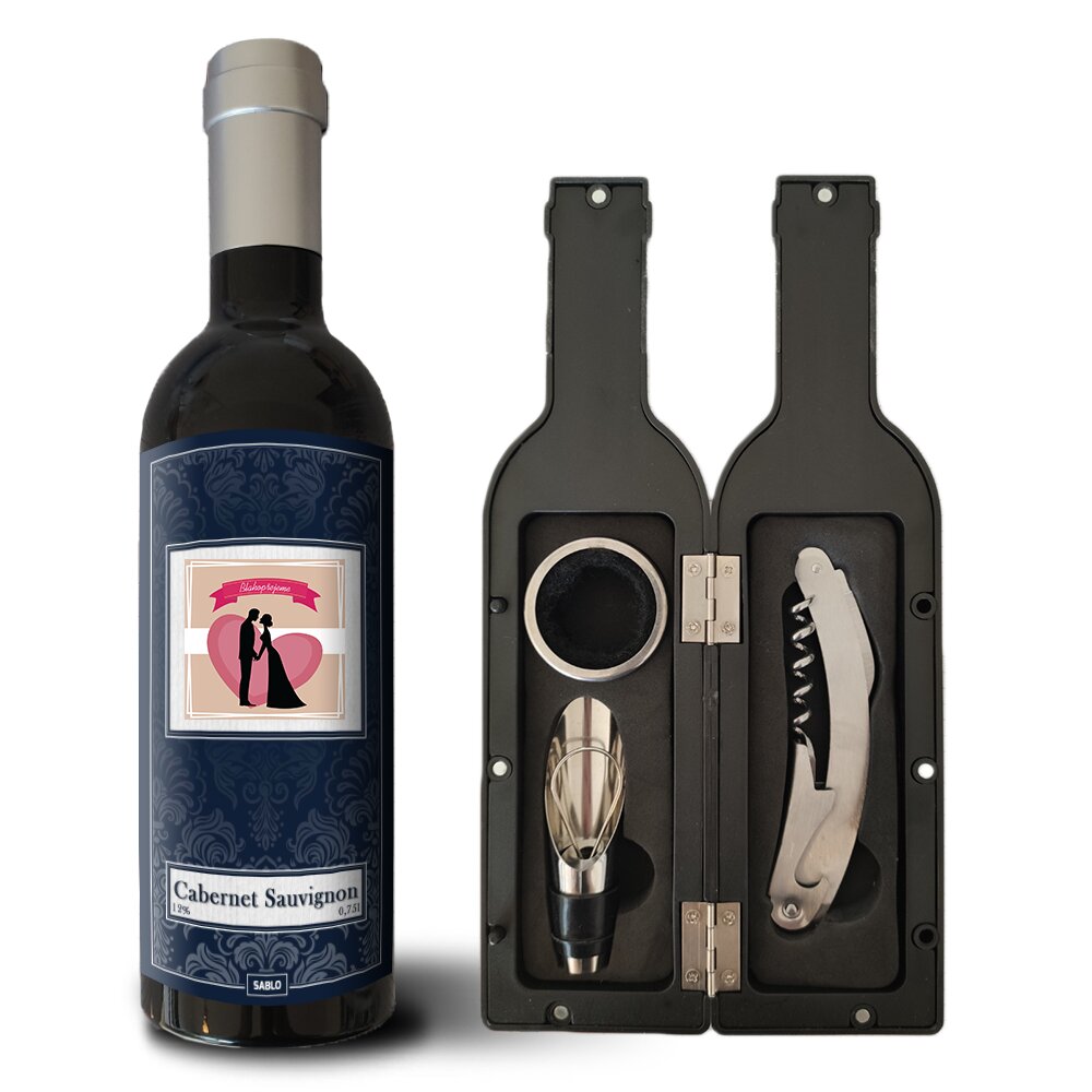 Sada na víno ve tvaru lahve s vývrtkou, kroužkem a nálevkou s originální dárkovou etiketouhmotnost 250 gvýška 24 cmmateriál nerezová ocel prečítať celé