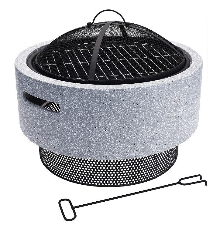 - součástí je ocelové víko s madlem, které zachytává poletující jiskry, ohniště je tak bezpečné pro použití na citlivých površích a trávníku