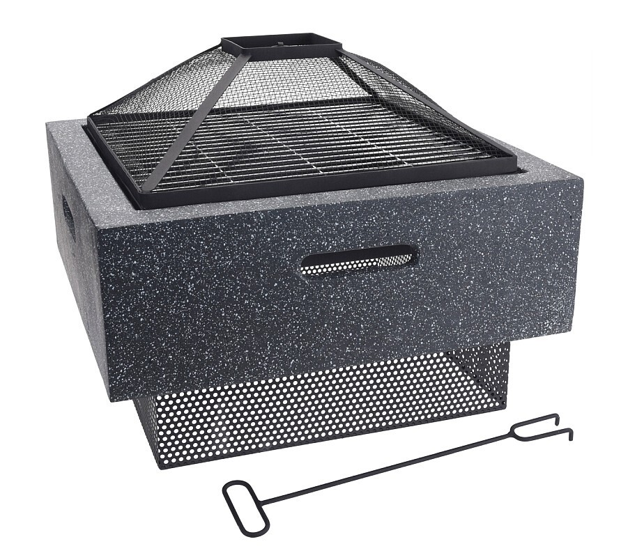 PROGARDEN Ohniště s grilovacím roštem a víkem mramor/ocel KO-CM7000160