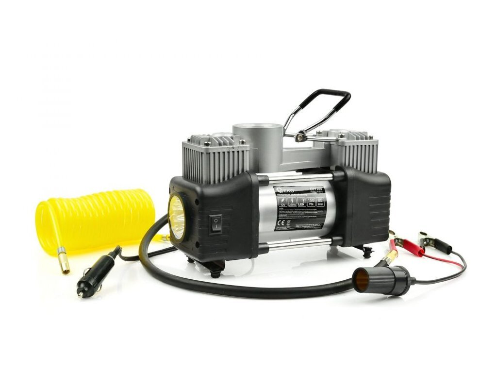 Dvoupístový kompresor do auta 10bar, 12V s LED svítilnou a příslušenstvím GEKO