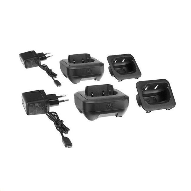 Motorola nabíjecí kolébka s nabíječkou pro vysílačky Motorola T82, T62Set dvou stolních nabíječů (označení IXPN4039) pro možnost nabíjení PMR vysílaček Motorola TALKABOUT T82 s T62. Stolní nabíječ s jednou nabíjecí pozicí je dodáván s AC adaptérem 230 V Euro/microUSB.Tvar nabíjecího slotu nabíeče...