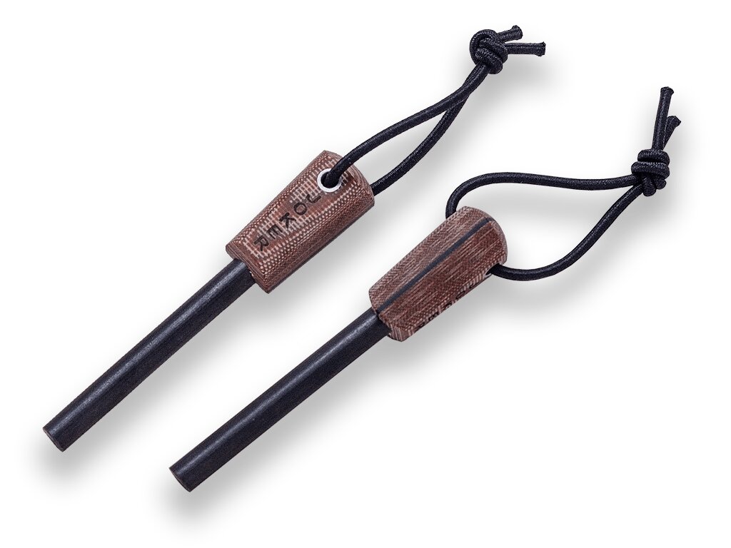 S rukoväťou z materiálu Micarta hnedej farby. S dĺžkou 10 cm a vybavené malou šnúrkou na zavesenie.