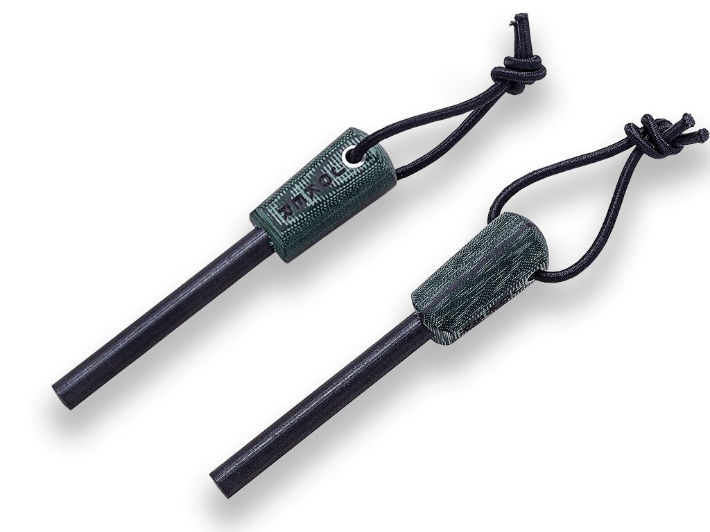 S rukoväťou z materiálu Micarta zelenej farby. S dĺžkou 10 cm a vybavené malou šnúrkou na zavesenie.