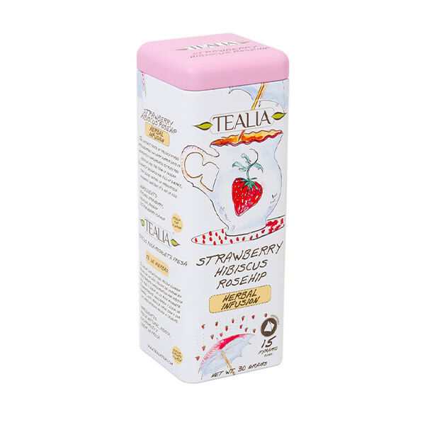 Tealia Strawberry Hibiscus Rosehip, ovocný čaj (15 pyramid) DMT 7/2024