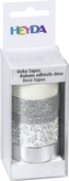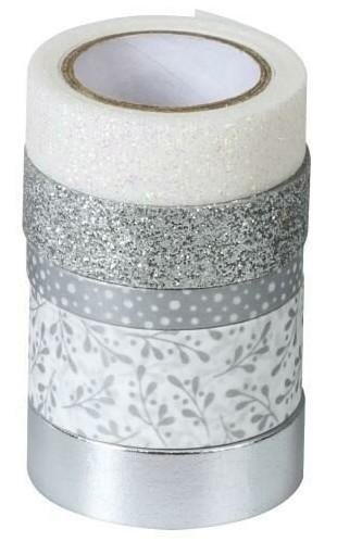 Páska lepicí papírová se používá ke kreativním účelům. Můžete s ní ozdobit různé výrobky při tvoření - kětináče, vázy, svícny, stojánky. Dozdobení různých deníků, zápisníků, památníků... Na přední straně krabičky jsou zoubky k odtržení lepenky. Motiv: efekt stříbrná / bílá