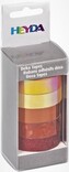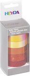 Páska lepicí papírová se používá ke kreativním účelům. Můžete s ní ozdobit různé výrobky při tvoření - kětináče, vázy, svícny, stojánky. Dozdobení různých deníků, zápisníků, památníků... Na přední straně krabičky jsou zoubky k odtržení lepenky. Motiv: oranžový mix lesk, glitr, hologram