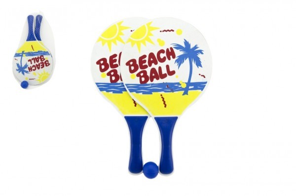 Plážová sada pálky 2ks dřevo 23x38cm s míčkem v síťce