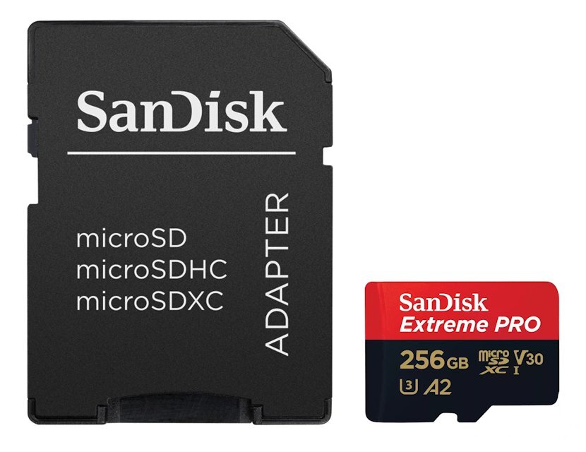 SanDisk Extreme PRO microSDXC 256GB / A2 C10 V30 UHS-I U3 / 200MB/s & 140MB/s / SD Adaptér + 2 years RescuePRO