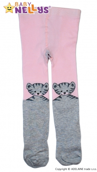 Bavlněné punčocháče Baby Nellys ® - KOČIČKA sv.růžová/sv. šedá, vel. 80/86; 80/86 (12-18m)
