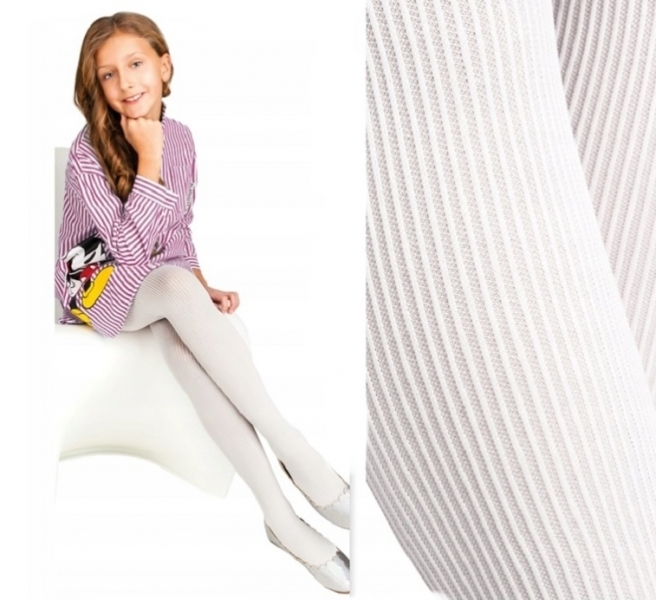 Dětské silonky, punčocháče, proužkované - bílé, vel. 140/146; 140-146 (9-11r)