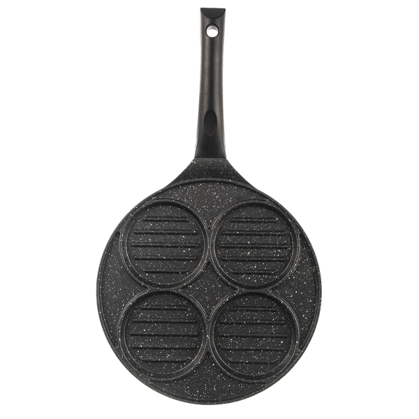 Pánev na hamburgery je odlévaná masivní pánev se sníženým okrajem a s velmi kvalitním nepřilnavým povrchem PFLUON GRANIT. Je určena pro přípravu masových i zeleninových placiček s minimální potřebou tuku. Čtyři sekce, vroubkované dno sekcí. Materiál: hliník s vynikajícím nepřilnavým povrchem...