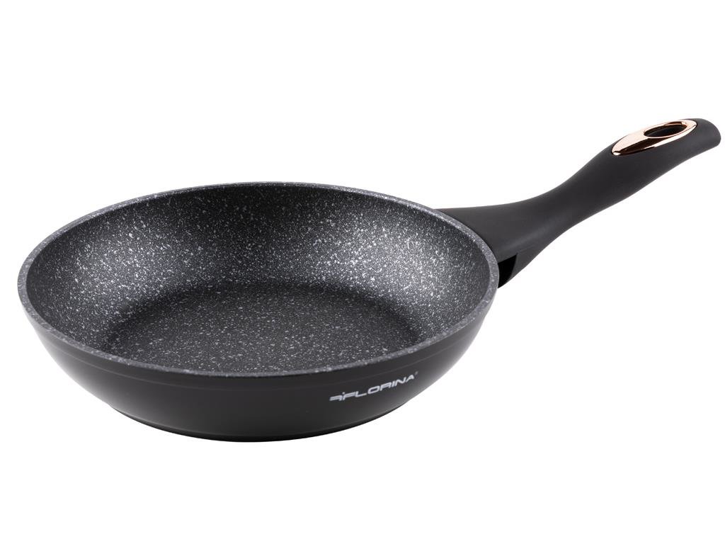 PÁNEV 20 CM SPECIFIKACE: MATERIÁL: ALUMINIUM TLOUŠŤKA: 3,00MM; KOVANÁ; VNITŘNÍ POVRCH: 2-VRSTVÝ NEPŘILNAVÝ ČERNÝ; VNĚJŠÍ POVRCH: NEPŘILNAVÝ ČERNÝ, ODOLNÝ PROTI VYSOKÝM TEPLOTÁM; RUKOJEŤ SOFT TOUCH S ROSE GOLD ELEMENTY; VHODNÁ NA INDUKCI; OPATŘENA PROTIPOŽÁRNÍ OCHRANOU; ČERNĚ MALOVANÁ