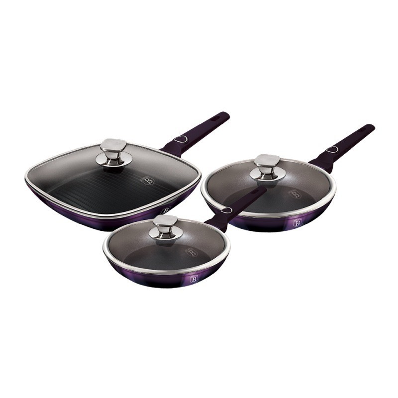 Pánev s titanovým povrchem a poklicemi sada 6 ks Purple Eclipse Collection