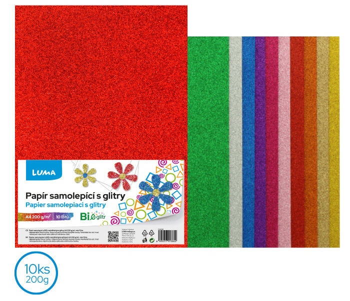 Papír barevný BIO GLITR A4 mix, 10ks samolepící LUMA