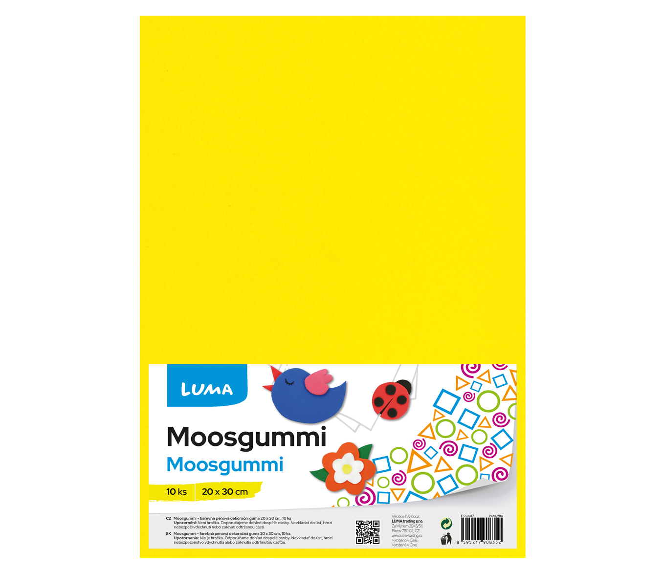 Vďaka svojej jednoduchej lepiteľnosti bežným lepidlom a možností zošívania je MOOSGUMMI veľmi praktická a všestranná. Vytvorte pečiatky, zvieratká, masky alebo rôzne farebné dekorácie, ktoré sú navyše vodeodolné a odolné proti opotrebovaniu. Žltá farba prináša svieži a výrazný akcent do každého projektu.