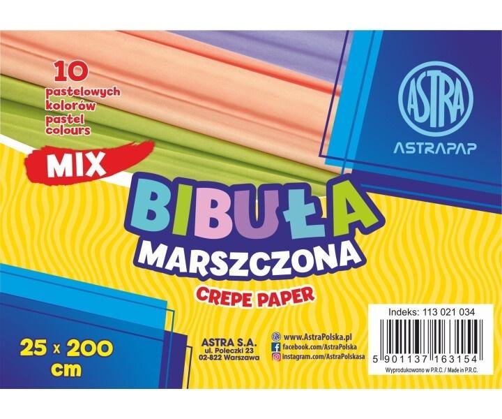Bibuła marszczona pastel 25x200cm mix (10szt)