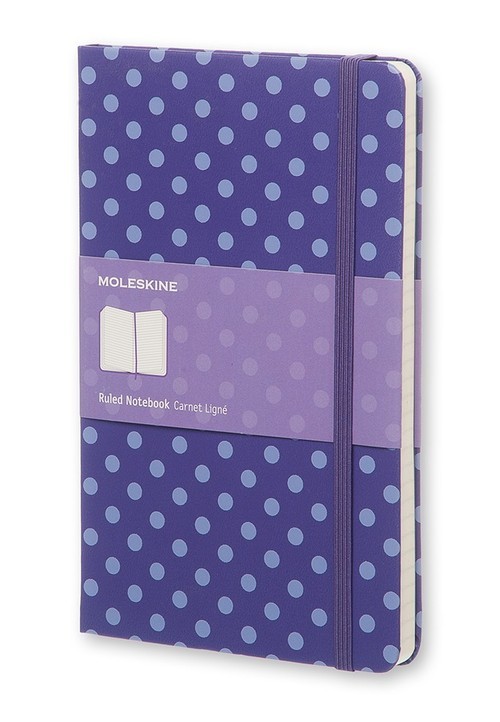 Moleskine z edycji specjalnej formatu Large (13 x 21 cm) w linie, w twardej fioletowej oprawie w groszki. prečítať celé