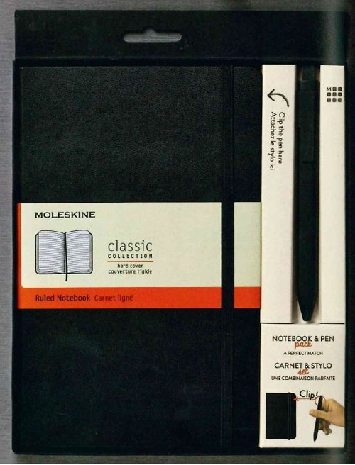 Pakiet Moleskine Notes P linia czarny + pióro (anglicky)