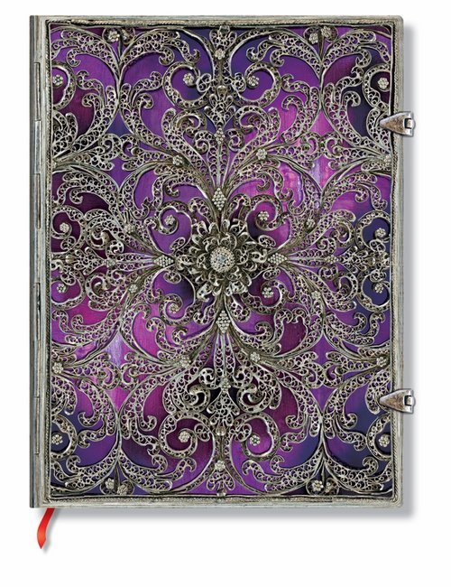 Notatnik Aubergine Ultra w linię niezwykłej marki Paperblanks. Pięknie zdobiona, wytłaczana okładka o niesamowitej fakturze. Koperta wewnątrz tylnej okładki na luźne, drobne notatki i paragony. Satynowa wstążka jako zakładka. Papier ekologiczny. Notatnik szyty. Zamykany na dwa zatrzaski. Ilość stron 240. Wymiary: 180x230 mm.