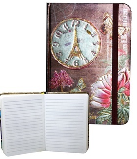 Zápisník s gumičkou 95x140 mm zlatý s hodinami A