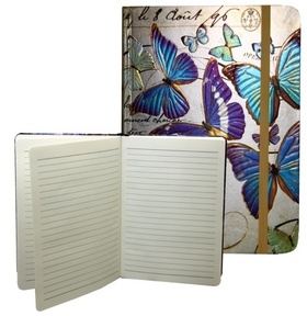Zápisník s gumičkou A5 145x210 mm zlatý s modrými motýli D