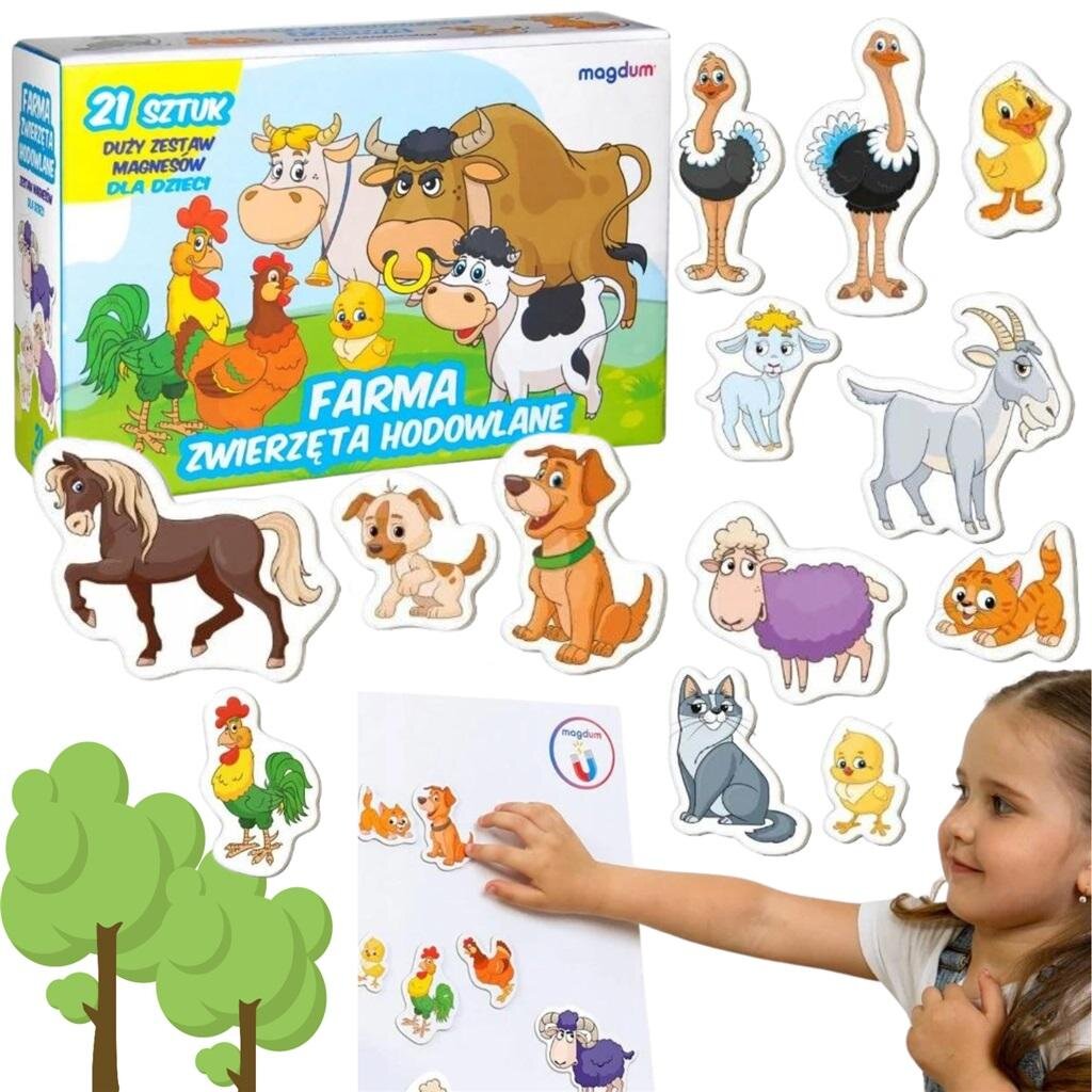 Zestaw magnesów "Zwierzęta hodowlane"Niezwykły zestaw magnesów, który zabierze malucha w fascynującą podróż po świecie zwierząt hodowlanych i pomoże nauczyć się nazw poszczególnych jej mieszkańców. To interaktywna lekcja, rozwijająca zmysły i wzbogacająca wyobraźnię najmłodszych.Dzięki magnesom...