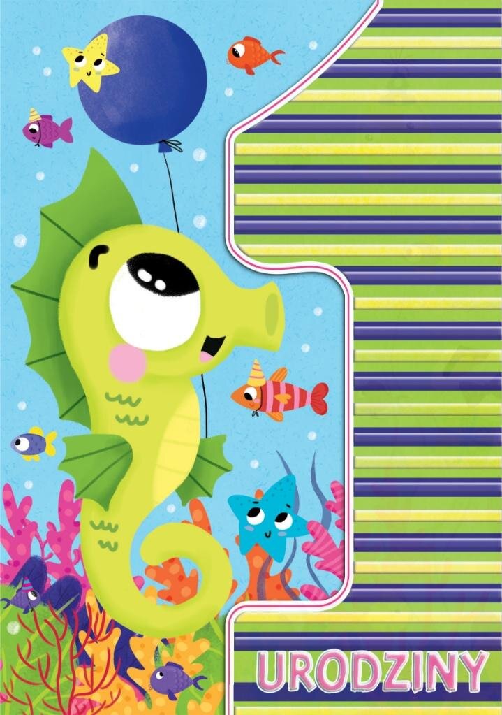 Karnet A5 Urodziny roczek - Konik morski