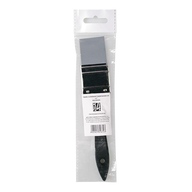Płaskie pędzle silikonowe o zakrzywionej formie. Trzony pędzli wykonane są z wytrzymałego tworzywa w kolorze czarnym, natomiast końcówki z silikonu. Pędzle przeznaczone są do różnych zadań artystycznych, w tym nakładania kleju, mieszania kolorów, nakładania farmy lub modelowania gliny w celu nadania jej gładkiej powierzchni. Silikonowe końcówki nie absorbują farby ani innych mediów. Po skończonej pracy pędzle można łatwo umyć i ponownie użyć