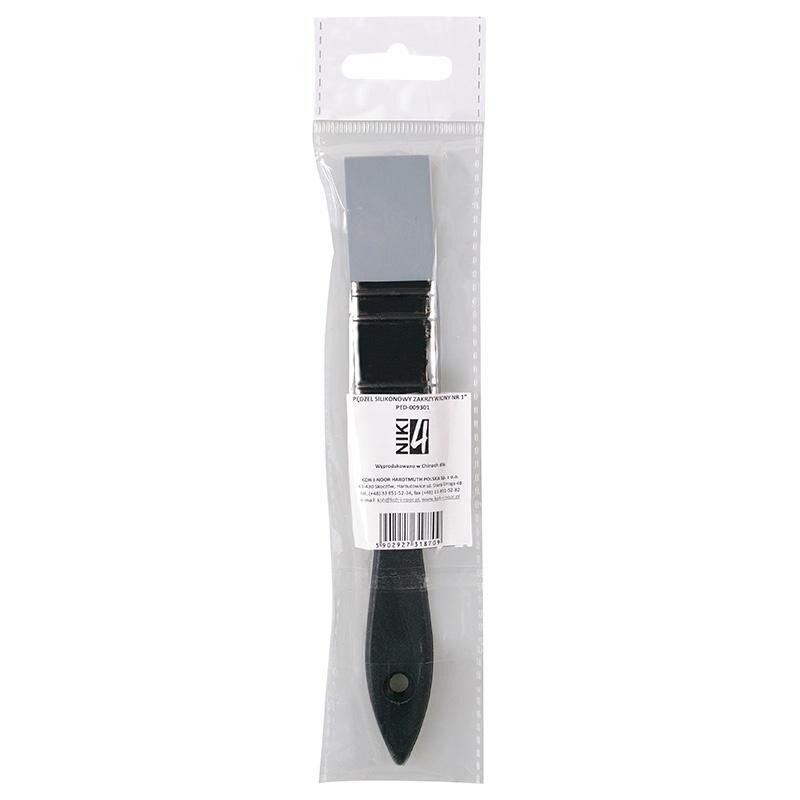 Płaskie pędzle silikonowe o zakrzywionej formie. Trzony pędzli wykonane są z wytrzymałego tworzywa w kolorze czarnym, natomiast końcówki z silikonu. Pędzle przeznaczone są do różnych zadań artystycznych, w tym nakładania kleju, mieszania kolorów, nakładania farmy lub modelowania gliny w celu nadania jej gładkiej powierzchni. Silikonowe końcówki nie absorbują farby ani innych mediów. Po skończonej pracy pędzle można łatwo umyć i ponownie użyć